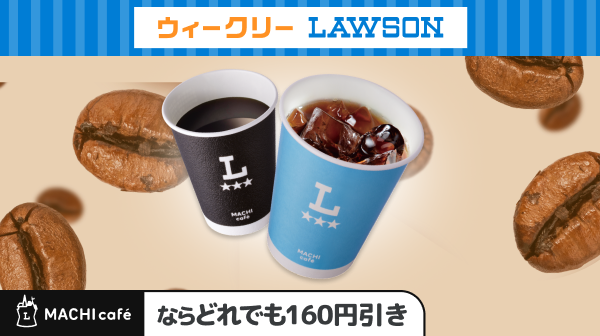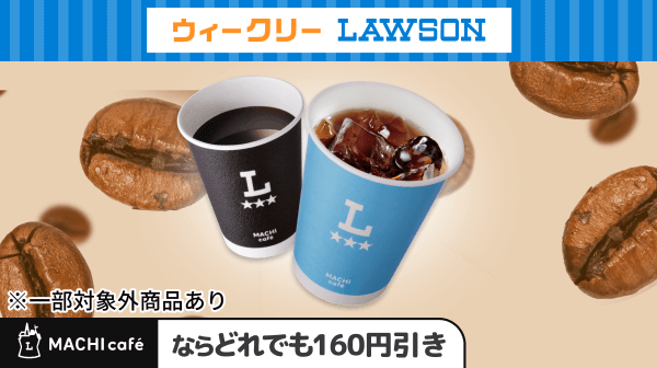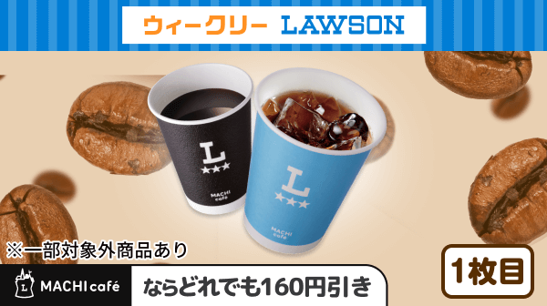 • ※無料券対象商品は、マチカフェ コーヒーS(アイス・ホット)のいずれか1つとなります。上記以外のマチカフェのドリンク各種には160円引クーポンとして利用できます。