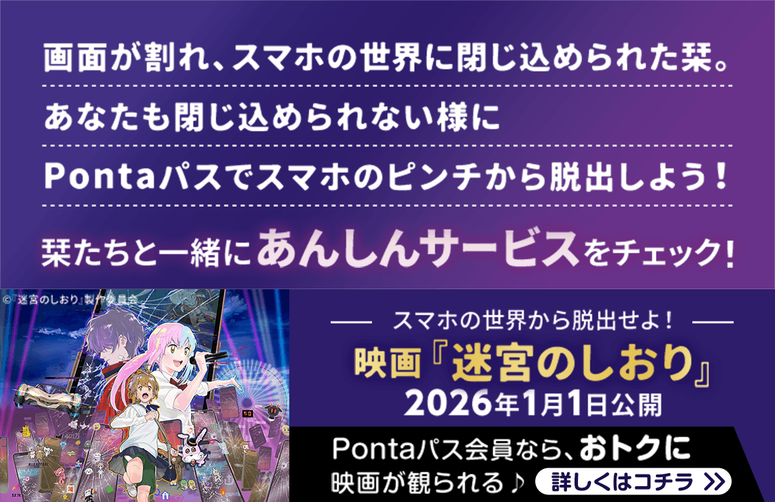 期間限定コラボデザイン表示中!通常デザインに切り替える 映画コラボデザインに切り替える 特典一覧 迷惑メッセージ・電話ブロック 電話・SMSを利用した詐欺から守る ウイルスブロック 不正利用やウイルス感染からスマホを守る ウイルスバスター for au ウイルス感染からスマホを守る データお預かり データを大切に保管し消失リスクから守る au Wi-Fiアクセス 情報漏洩など無料Wi-Fiの危険から守る CHARGESPOT for Pontaパス 充電不足による不安から守る Android 修理代金サポート スマホ/タブレット修理時の高額請求に備える iOS 修理代金サポート iPhone/iPad修理時の高額請求に備える 4G LTEケータイ 修理代金サポート ケータイ修理時の高額請求に備える 遠隔操作サポート(リモートサポート) オペレーターに画面を共有しながら相談ができて安心 スマホの位置検索(位置検索サポート) スマホ紛失時の不安に備える ※2026年3月17日(火)特典終了予定 au HOMEデバイス延長保証 au HOMEデバイスの保証期間を延長 安心ナビ 子どもや家族の居場所を見守る ※2026年2月28日(土)無料特典終了予定 自転車・乗り物事故 入院費サポート 交通事故の入院費に備える ※2026年1月31日(土)特典終了予定